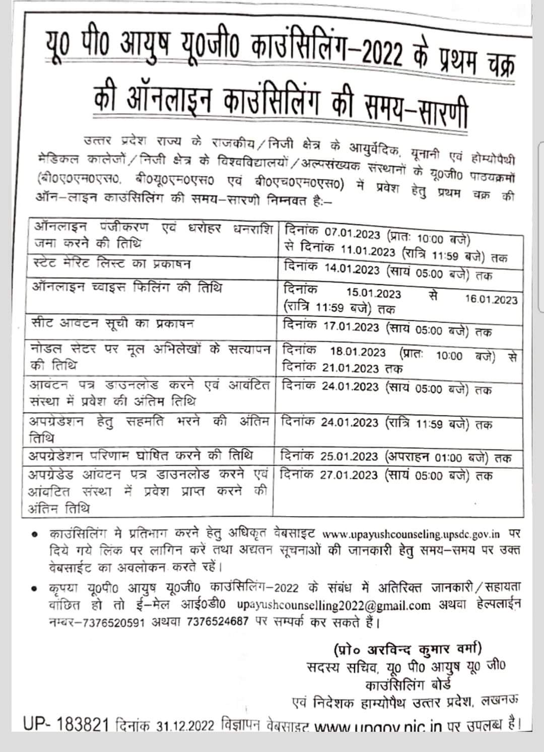 Events Uncategorized January 5, 2023 0Likes UP Ayush UG Online Counselling-2022 first round Timetable of Important Dates 1225Views