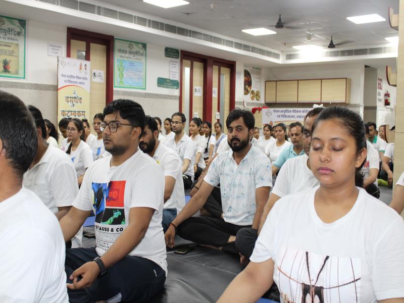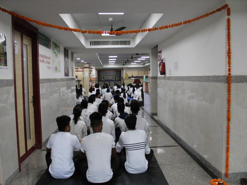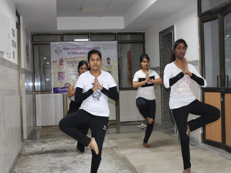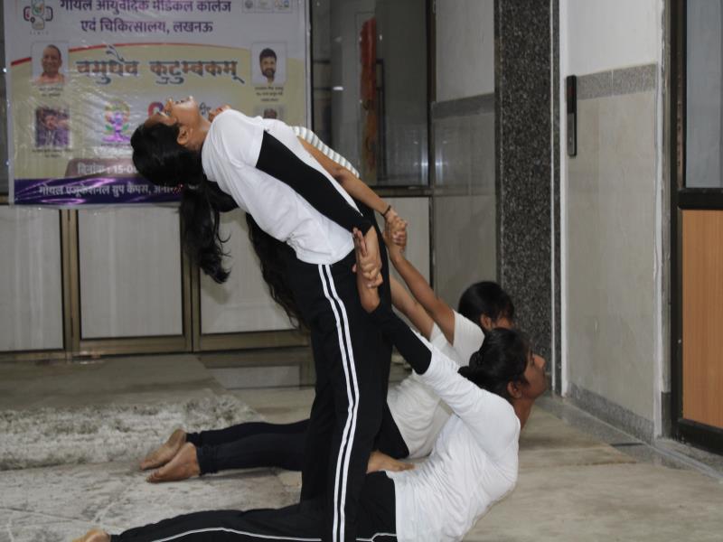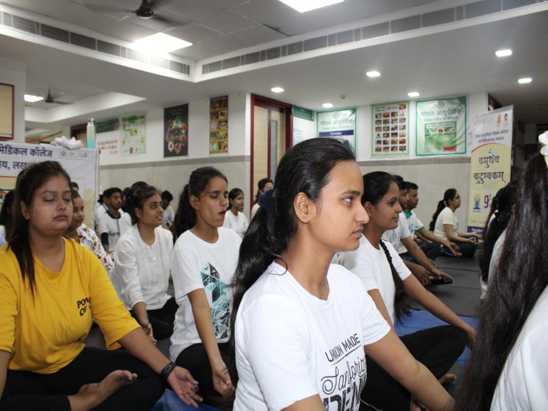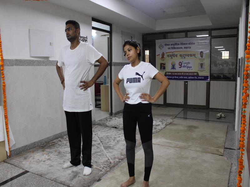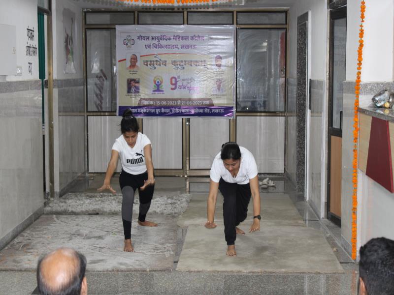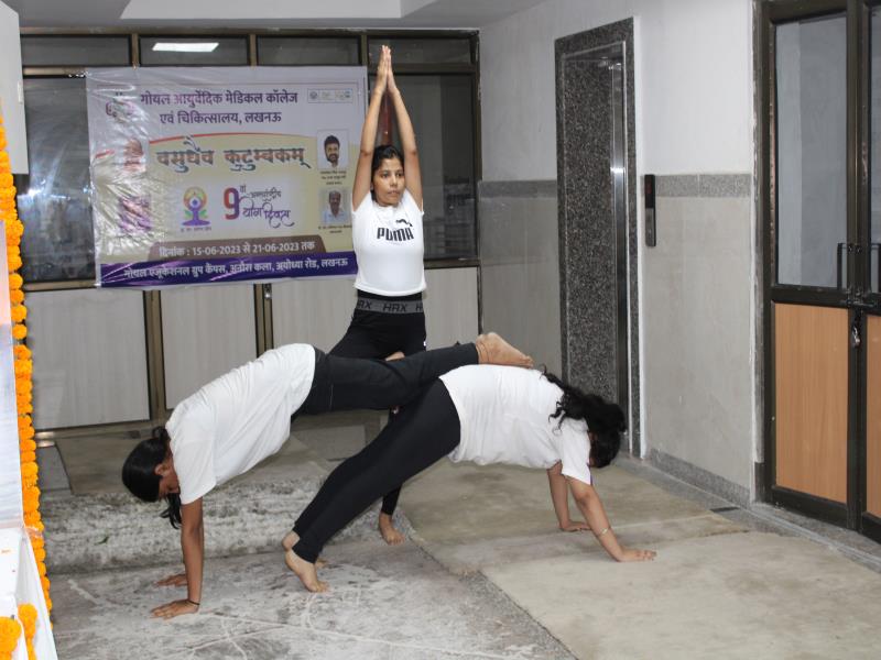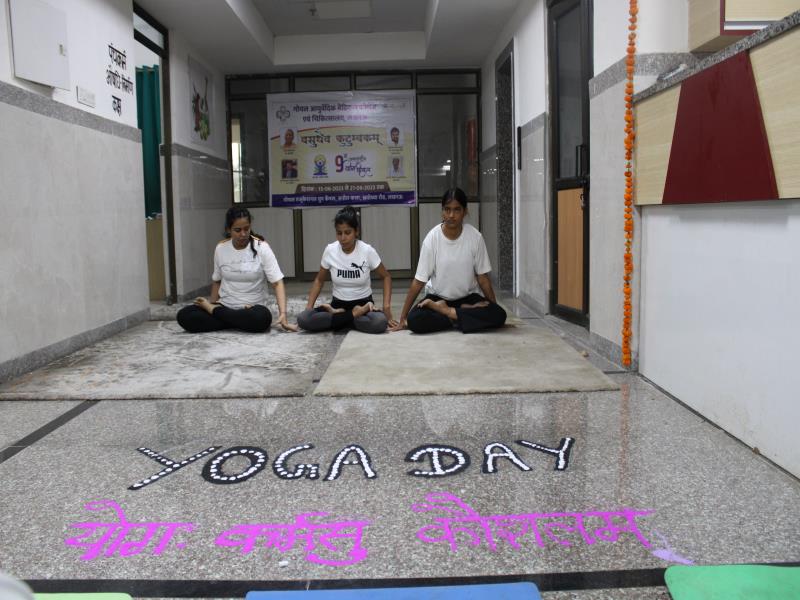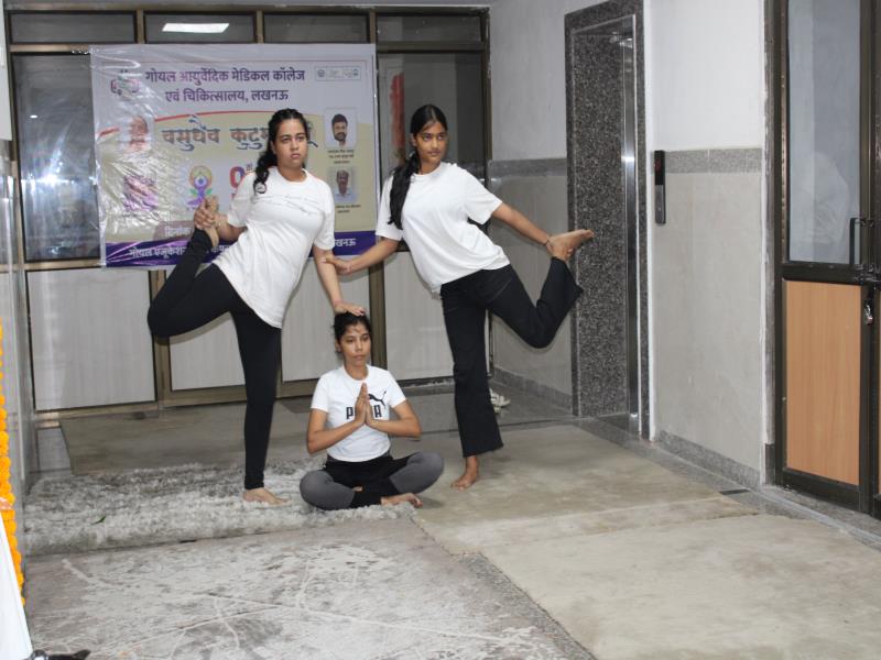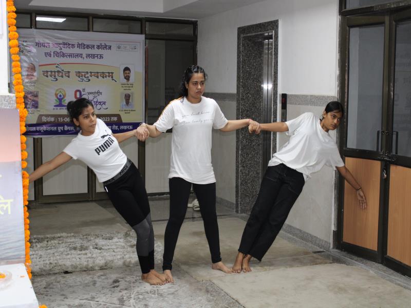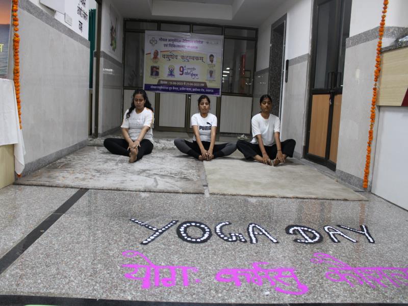 21 जून, 2023 को गोयल आयुर्वेदिक मेडिकल कॉलेज और अस्पताल में अंतरराष्ट्रीय योग दिवस का भव्य उत्सव मनाया गया। इस उत्सव में उपस्थित श्रेष्ठ व्यक्तित्वों के साथ अध्यक्ष श्री महेश गोयल जी, प्राचार्य डॉ. ए.के. श्रीवास्तव, चिकित्सा सलाहकार, संकाय सदस्य और पहली बैच के उत्साही छात्रों के साथ। 🧘‍♀️🌍 समारोह की शुरुआत पवित्रता की प्रतीक दीपक जलाकर की गई, जो हमारे अंदर दिव्य प्रकाश की प्रतीक है। हमारे अनुभवी संकाय सदस्यों और उत्साही BAMS छात्रों के मार्फत चलाए गए 2 घंटे तक के योग मैराथन में भाग लिया। हमारे प्रसिद्ध चिकित्सा सलाहकारों द्वारा दिए गए प्रेरणादायक वार्तालापों के माध्यम से आयुर्वेद के चिकित्सा पहलुओं के बारे में ज्ञान प्राप्त करें। प्राणशक्ति और दीर्घायु को बढ़ाने वाले आयुर्वेदिक सिद्धांतों, जड़ी-बूटी उपचार और जीवनशैली अभ्यासों के बारे में जानें। हमारे डॉ. नौशान रजा के मार्गदर्शन में एक समूह ध्यान सत्र में एकजुट हो गए। हमने गहरी शांति और हमारे अंदर सीमित अपार क्षमता का अनुभव किया।