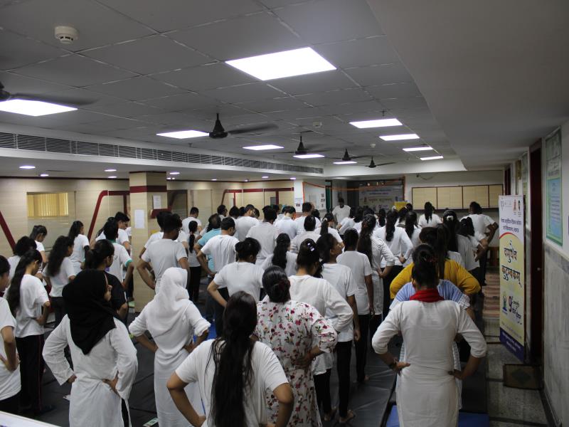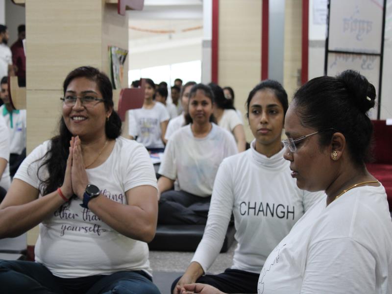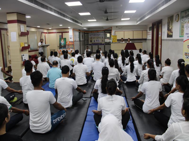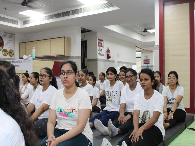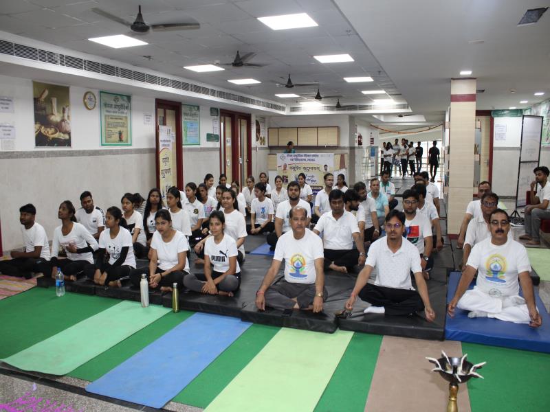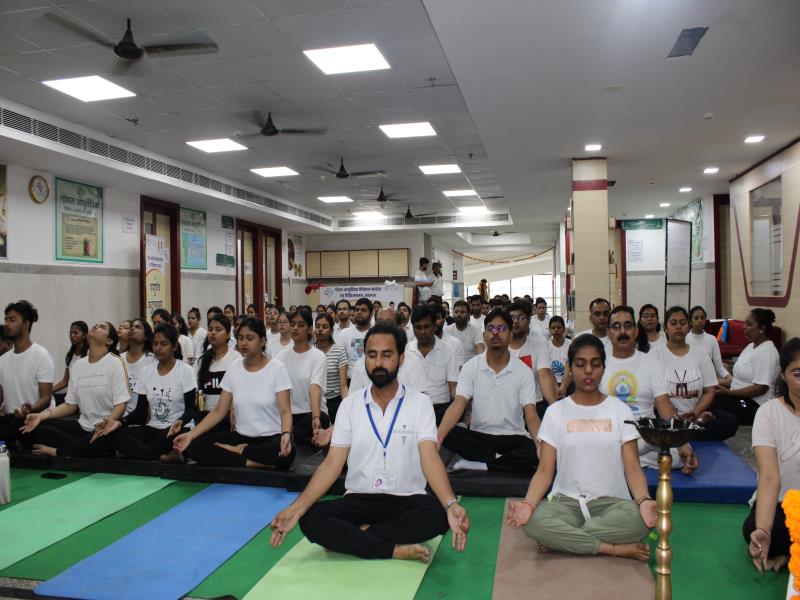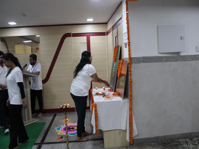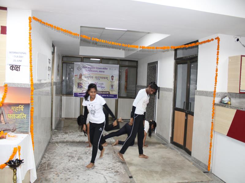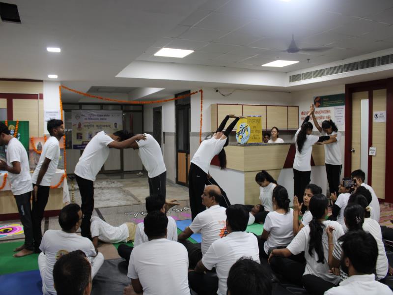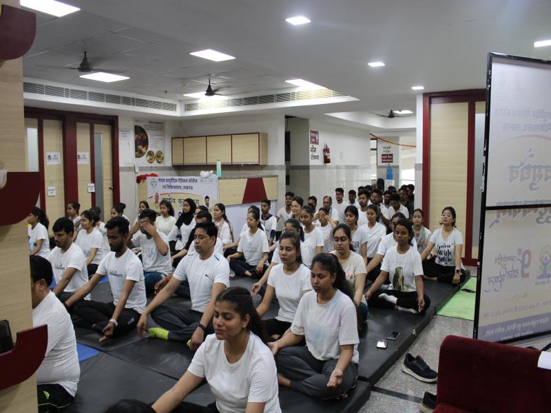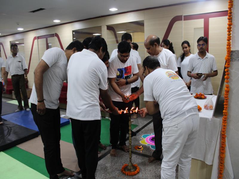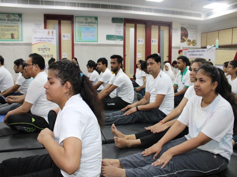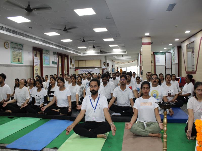 21 जून, 2023 को गोयल आयुर्वेदिक मेडिकल कॉलेज और अस्पताल में अंतरराष्ट्रीय योग दिवस का भव्य उत्सव मनाया गया। इस उत्सव में उपस्थित श्रेष्ठ व्यक्तित्वों के साथ अध्यक्ष श्री महेश गोयल जी, प्राचार्य डॉ. ए.के. श्रीवास्तव, चिकित्सा सलाहकार, संकाय सदस्य और पहली बैच के उत्साही छात्रों के साथ। 🧘‍♀️🌍 समारोह की शुरुआत पवित्रता की प्रतीक दीपक जलाकर की गई, जो हमारे अंदर दिव्य प्रकाश की प्रतीक है। हमारे अनुभवी संकाय सदस्यों और उत्साही BAMS छात्रों के मार्फत चलाए गए 2 घंटे तक के योग मैराथन में भाग लिया। हमारे प्रसिद्ध चिकित्सा सलाहकारों द्वारा दिए गए प्रेरणादायक वार्तालापों के माध्यम से आयुर्वेद के चिकित्सा पहलुओं के बारे में ज्ञान प्राप्त करें। प्राणशक्ति और दीर्घायु को बढ़ाने वाले आयुर्वेदिक सिद्धांतों, जड़ी-बूटी उपचार और जीवनशैली अभ्यासों के बारे में जानें। हमारे डॉ. नौशान रजा के मार्गदर्शन में एक समूह ध्यान सत्र में एकजुट हो गए। हमने गहरी शांति और हमारे अंदर सीमित अपार क्षमता का अनुभव किया।