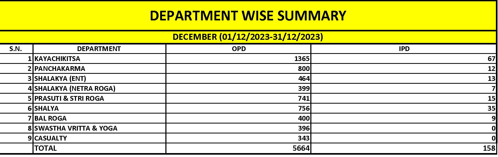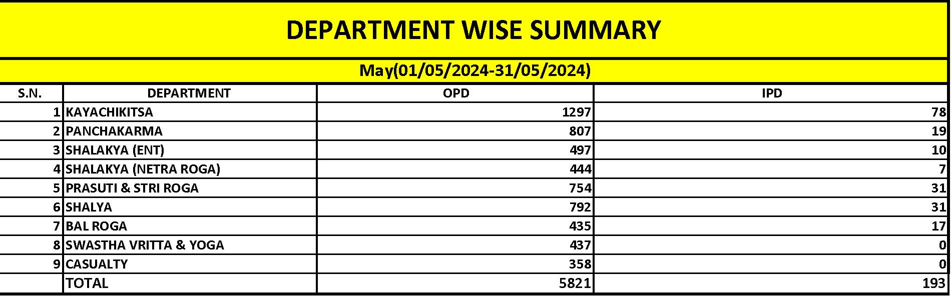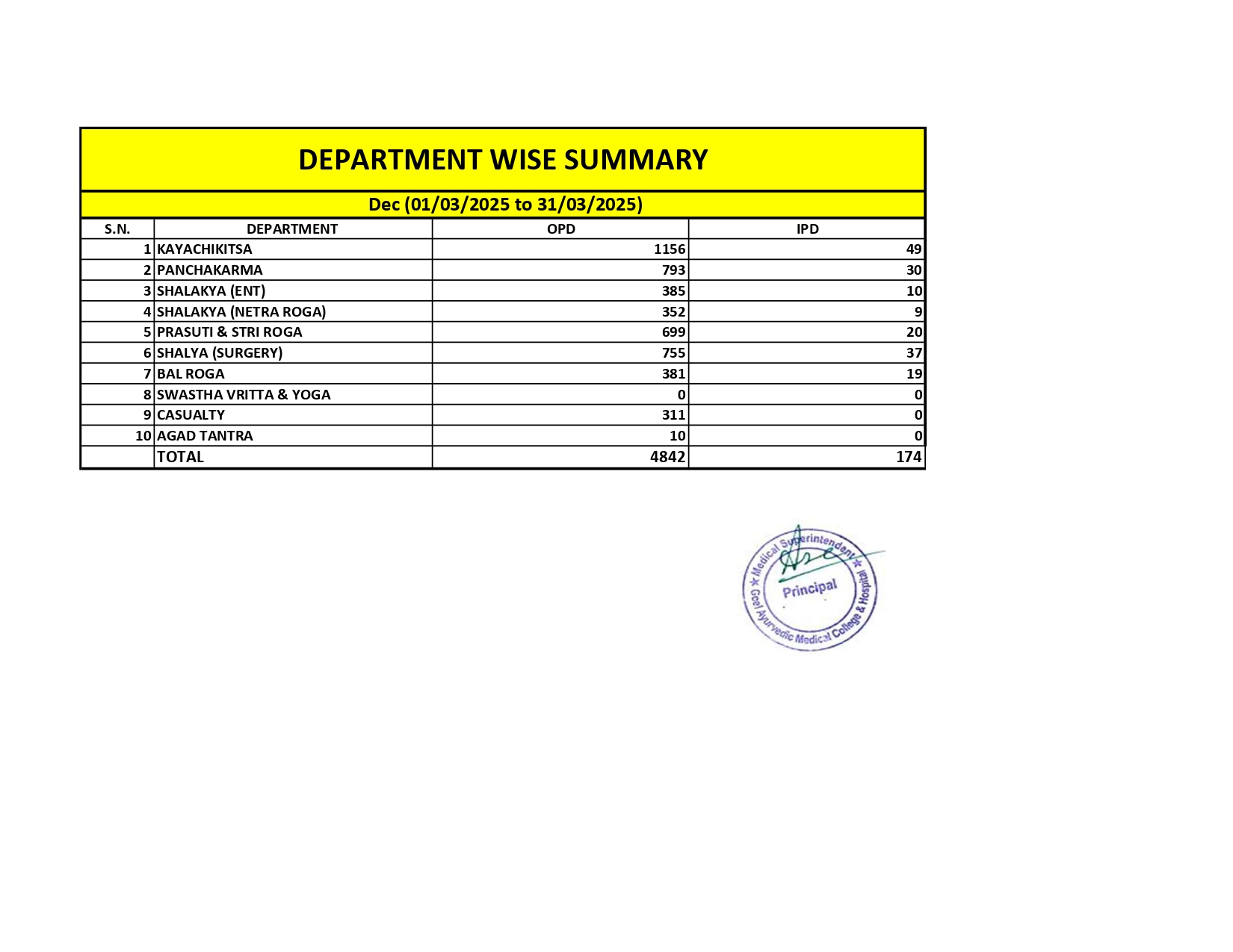 | 4 | SHALAKYA (NETRA ROGA) | 278 | 5 |